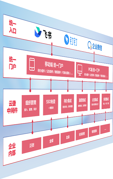 对协作平台提供支持服务,,支持企业应用与协作平台对接,,包含组织同步、、消息集成、、待办集成等。。支持目前主流的协作平台:钉钉、、、、企微和飞书。。